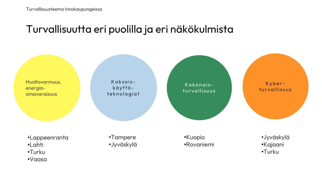 Innokaupungeista turvallisuuden on nostanut ekosysteemisopimukseensa yli puolet kaupungeista. Kokonaisturvallisuuden lisäksi kaksoiskäyttöteknologiat, kyberturvallisuus, ruokaturvallisuus, energiaomavaraisuus ja huoltovarmuus ovat turvallisuuteen liittyviä kaupunkien kehittämisen painopisteitä.