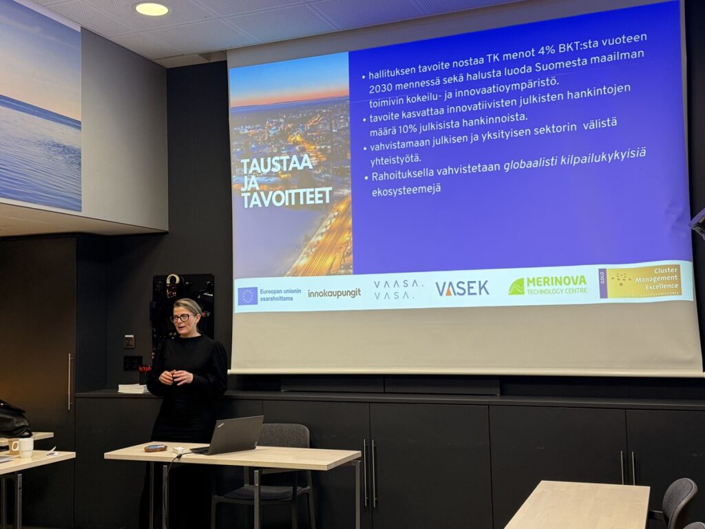 Tilaisuus aloitettiin ajankohtaiskatsauksella valtakunnallisiin tavoitteisiin ja Vaasan ekosysteemityön painopisteisiin. Suomen hallituksen kunnianhimoisena tavoitteena on nostaa TKI-menot neljään prosenttiin BKT:sta vuoteen 2030 mennessä ja luoda maastamme maailman toimivin kokeilu- ja innovaatioympäristö. Tavoitteet heijastuvat myös Vaasaan, jossa hiilineutraalisuuteen pyritään 2020-luvun aikana hyödyntämällä kaupungin vahvaa energiaekosysteemiä, tiivistä TKI-yhteistyötä ja pilotointiympäristöjä.